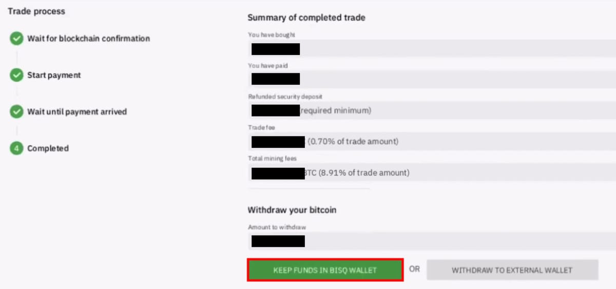 Bisq utilise un système de dépôt fiduciaire appelé "Trade wallet".